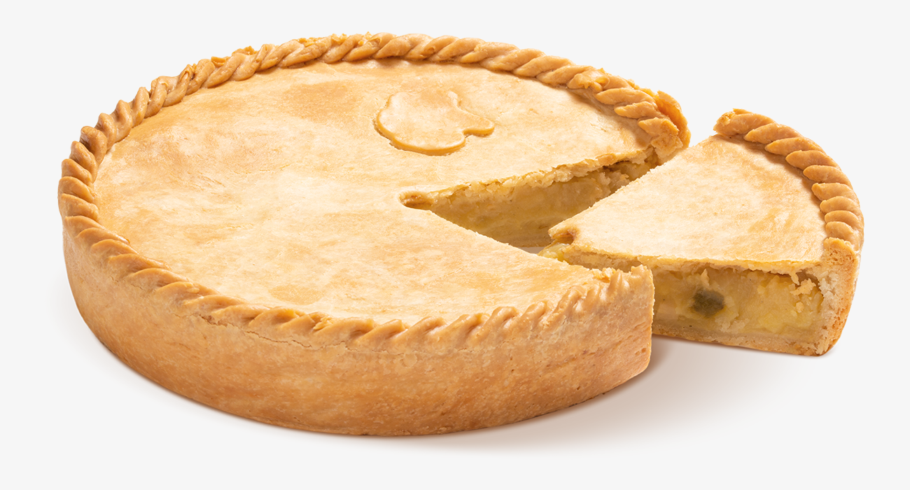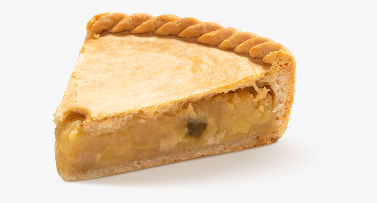 Для этого пирога мы обжариваем ароматные белые грибы с луком и добавляем их к мятому картофелю.